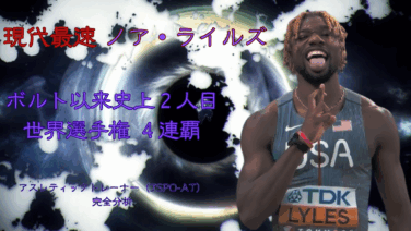 スポーツ ノア・ライルズ完全技術分析:アスレティックトレーナーが解剖する世界最速の科学 2025年東京世界陸上で史上2人目の200m4連覇を達成したノア・ライルズ。身長180cmの標準体格でなぜ世界最速なのか?驚異的な130cmジャンプ力、バイオメカニクス最適化、科学的コンディショニングを日本スポーツ協会公認アスレティックトレーナーが専門的に分析。 2025.09.23 スポーツ観戦日記